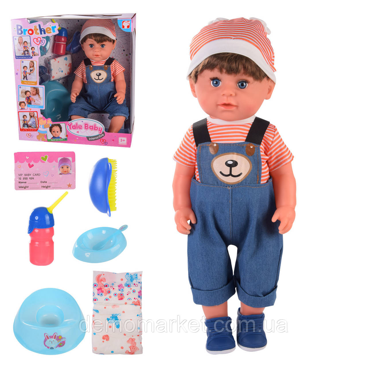 Пупс функціональний «Старший брат» із шарнірними колінами в наборі з горщиком, памперс, соска, посуд